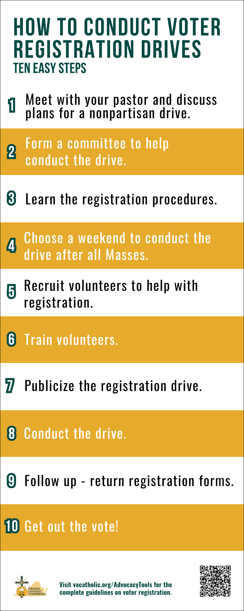 Conduct or participate in a voter registration drive in your parish.