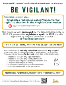 To stay engaged on the Extreme Abortion Amendment and other important issues, please join the Virginia Catholic Conference email advocacy network!
